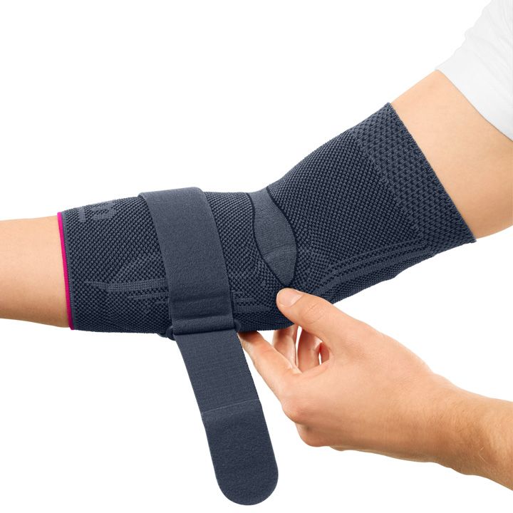 Dodatečný popruh pro individuální nastavení komprese: možnost používání pásky může pomoci vyvinout cílené a řízené množství tlaku na odlehčení při činnostech náročných na zatížení lokte.