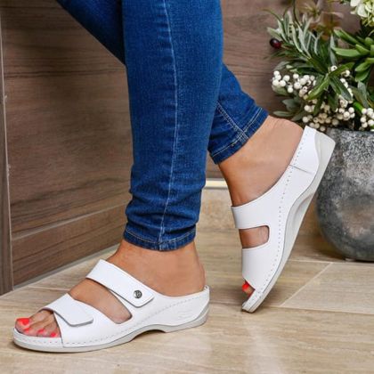 Dámské zdravotní pantofle FC06 jsou kožené, mají gelovou a anatomicky tvarovanou stélku, která dopřeje vašim nohám fantastický komfort. Podrážka má protiskluzový povrch. Nastavitelné pásky v oblasti nártu na suchý zip zajistí, že pantofle skvěle sednou na každou nohu.