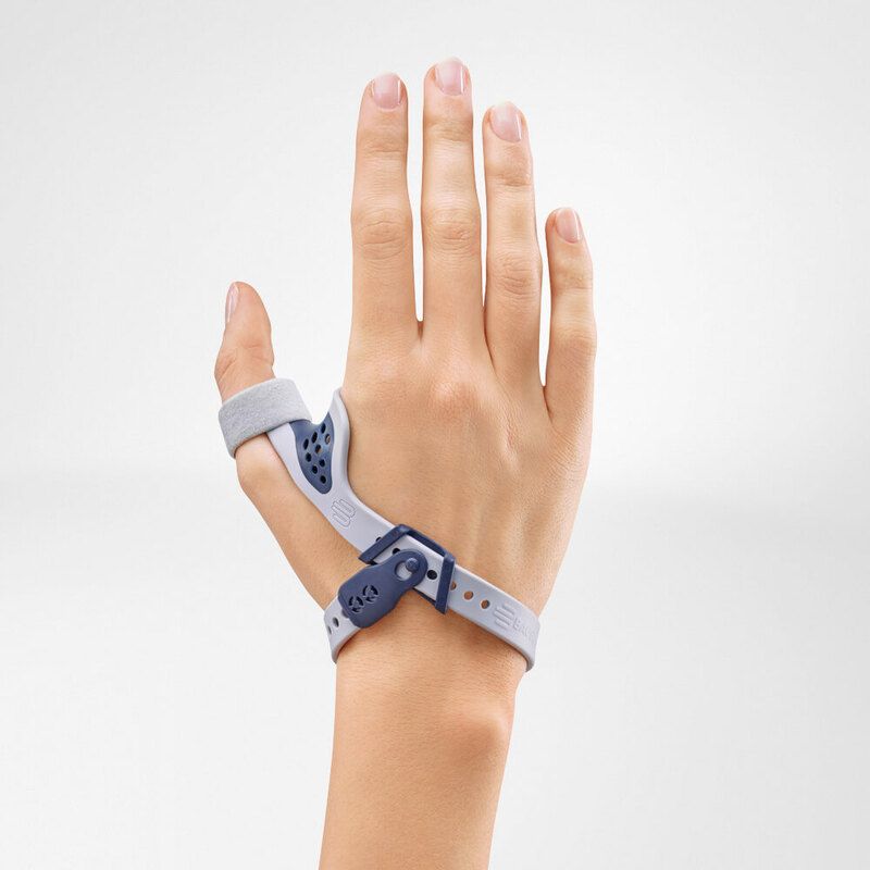 Měkké pružné okraje zvyšují komfort nošení lehké ortézy a perforace umožňuje, aby se k pokožce dostal dostatek vzduchu. Protože jsou všechny materiály stejně robustní, voděodolné a snadno se udržují, můžete ortézu nosit při mytí rukou nebo oplachování a poté ji jednoduše osušit. Druhý, vyměnitelný pásek na palec je součástí dodávky, aby se zabránilo tvorbě choroboplodných zárodků vlivem vlhkosti.