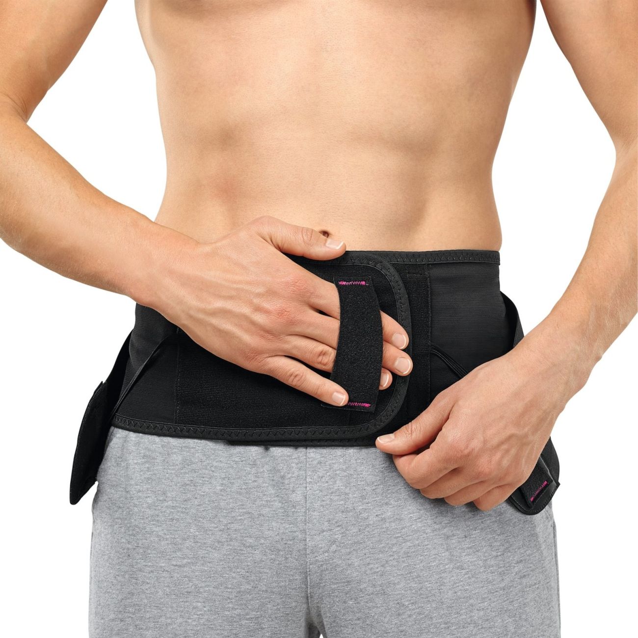 Bederní pás z kompresivního materiálu se 4 integrovanými stabilizačními výztuhami. Pomocí utahovacích cirkulárních pásků, které způsobují kompresi v břišní oblasti a podporují svalstvo trupu, docílíme odlehčení bederní páteře a následné zmírnění bolesti.