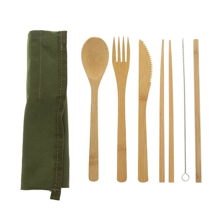Obsah balení: lžíce, vidlička, nůž, hůlky, brčko, kartáček na čištění - vše v praktickém látkovém pouzdře