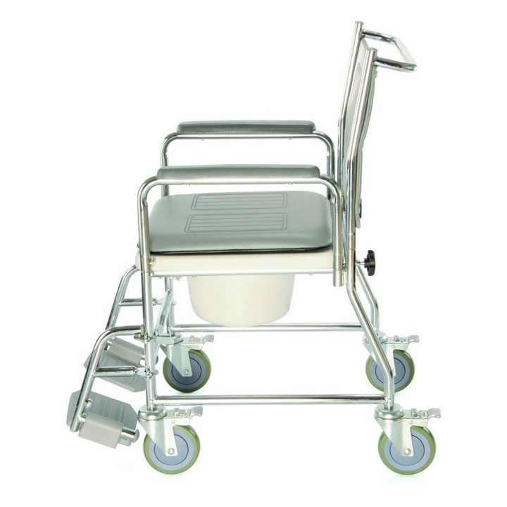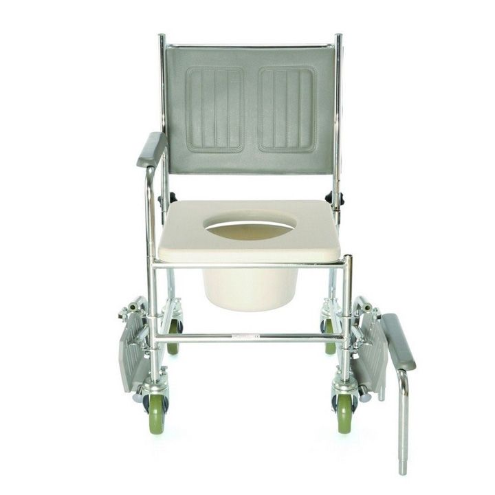 Ocelový rám křesla je doplněn omyvatelnou plastovou toaletní deskou, polstrovaným sedákem, odnímatelnou opěrkou zad a plastovou toaletní nádobou (ACC/5A). Boční odnímatelná madla mají pohodlné polstrované područky. Křeslo je dále vybaveno odklopnými a odnímatelnými podnožkami a čtyřmi otočnými kolečky s nášlapnou brzdou.