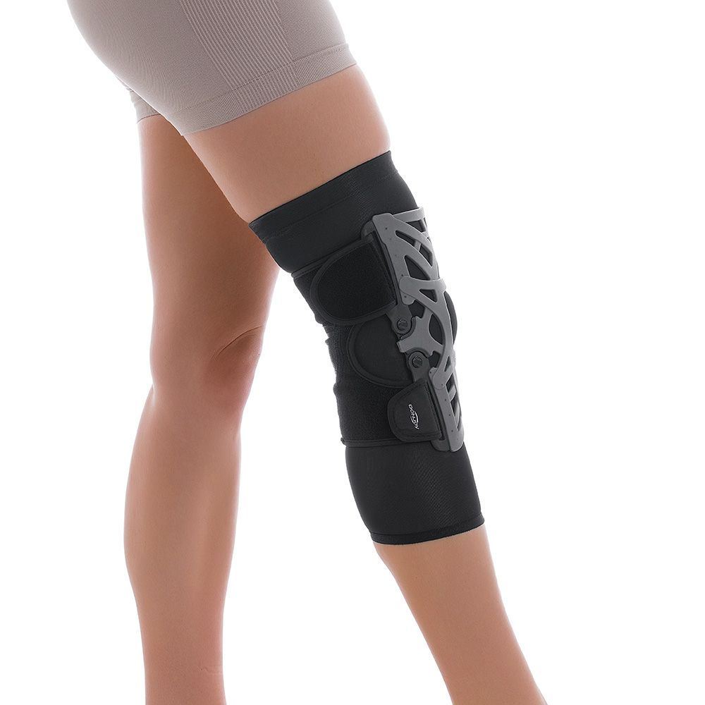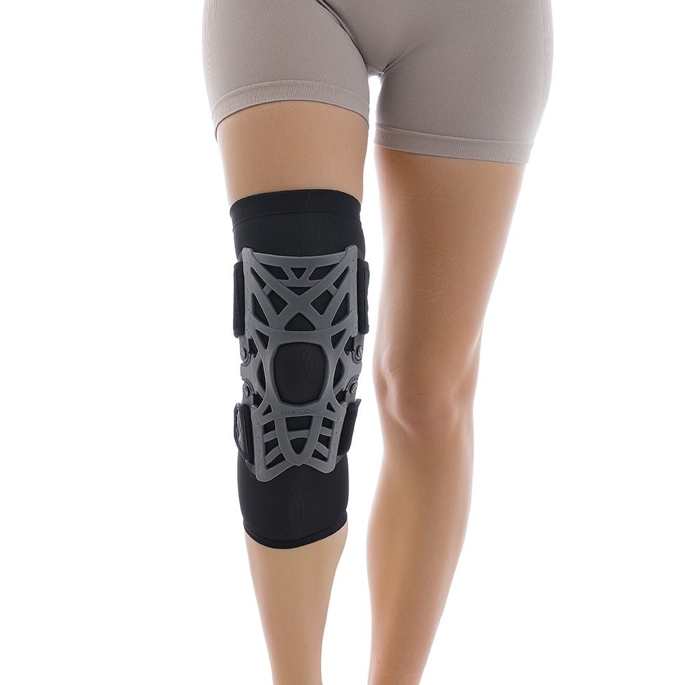 REACTION KNEE BRACE je pokročilá ortéza určená na liečbu problémov s patelofemorálnym kĺbom. Patentovaná elastomérová mriežka koriguje polohu pately, rozkladá nežiaduce sily a znižuje tlak v oblasti pately - výsledkom je rýchlejšia úľava od bolesti a lepší komfort pri pohybe.