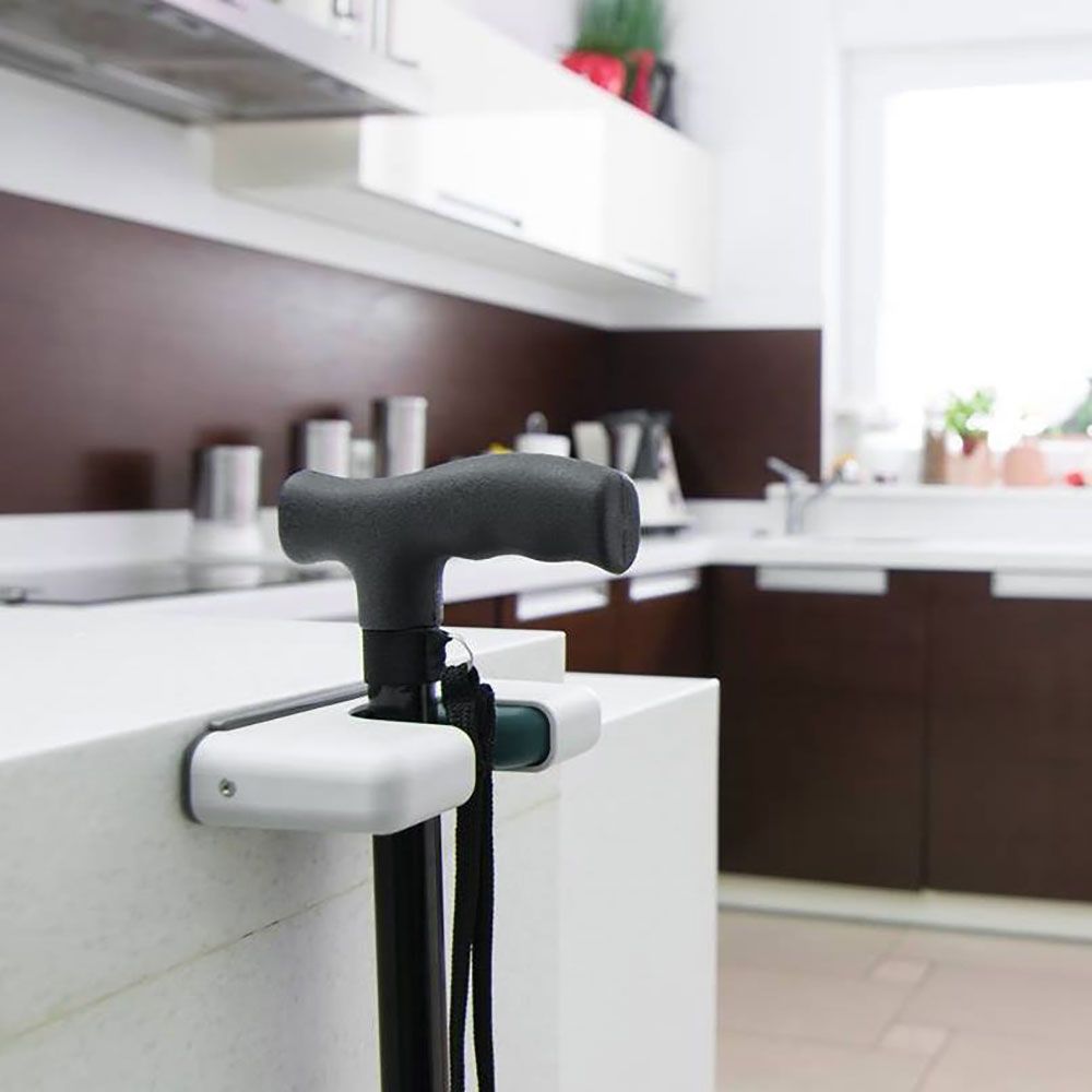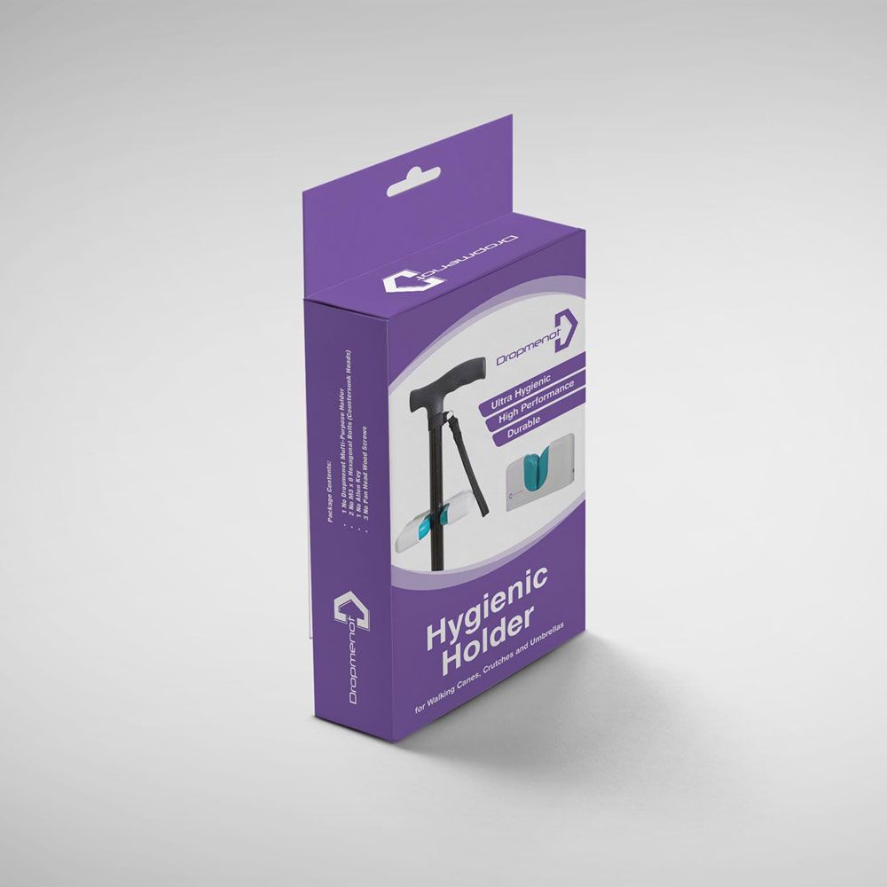 Dropmenot je chytrý držák, který udrží hůl nebo berle přesně tam, kde je zrovna potřebujete – bezpečně, čistě a pohodlně.