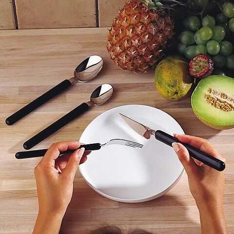 Příbory a jejich těžiště jsou navrženy tak, aby byl jejich uživatel ušetřen zbytečných pohybů rukou a předloktí.