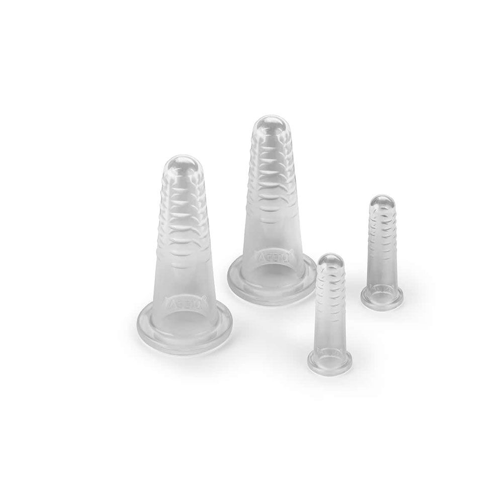 Set pro faceliftingovou baňkovou masáž FASCIQ® je vybaven speciálním gripem, který usnadňuje manipulaci a zajišťuje pevný a pohodlný úchop. Díky této inovativní funkci baňky nekloužou ani při použití masážních krémů či olejů, což zaručuje precizní a efektivní masáž.