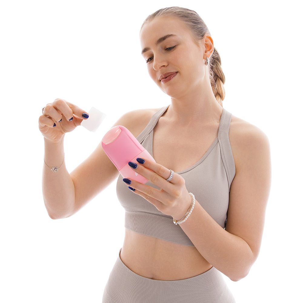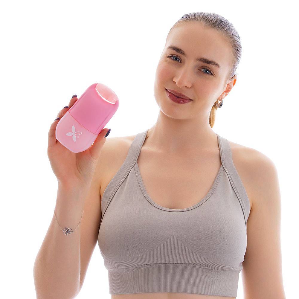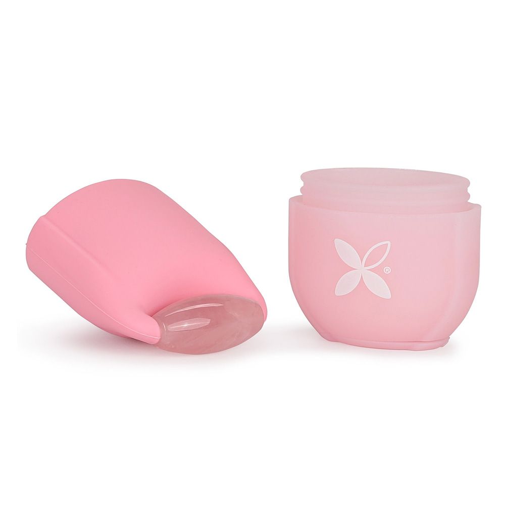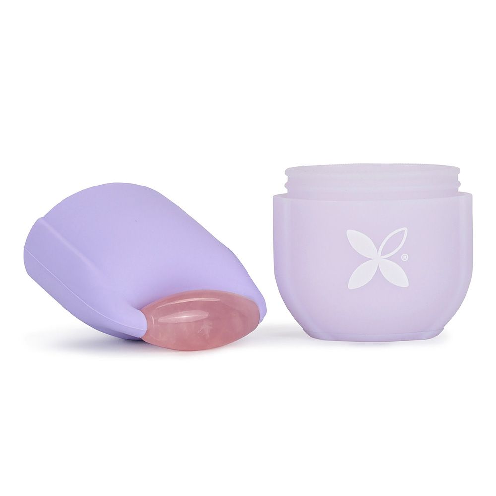 Praktický silikonový nástroj s kamenným (křemenným) rollerem — snadné použití doma jako součást denní péče. Podporuje mikrocirkulaci, pomáhá redukovat otoky pod očima a přispívá k pevnějšímu vzhledu pleti.