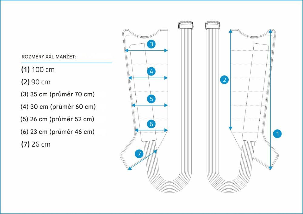 | Dodávané manžety | 2× 8-komorové manžety (vel. XXL) - pro výšku osoby 170-190 cm |