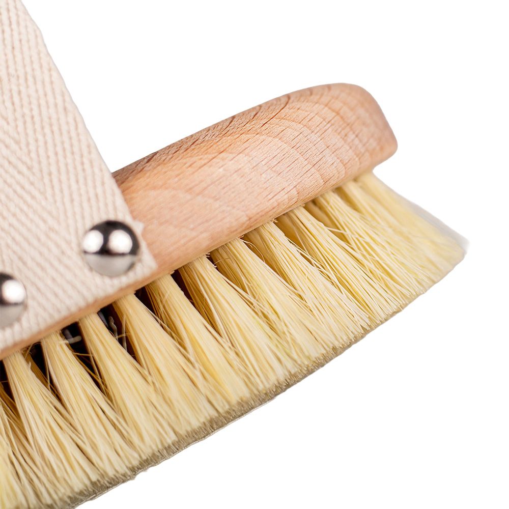Pevné, příjemně drsné štětiny jsou ideální pro intenzivní suché kartáčování, podporu mikrocirkulace a viditelné zlepšení vzhledu pokožky – zejména při péči o celulitidu.