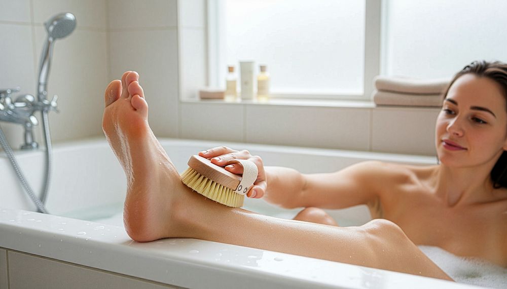 Vždy na suchou pokožku – nejlépe před sprchou nebo koupelí.