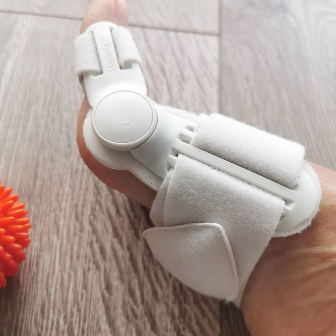 Vbočený palec nohy neboli Hallux valgus, je následný jev příčně ploché nohy. Problémy nastávají při přetížení způsobeném vysokými podpatky nebo nedostatkem místa pro prsty nohou. Bolestivé záněty vbočeného palce a pod ním se nacházejícího tíhového váčku mohou být toho důsledkem. Hallufix zmírňuje bolest, je oporou nohy při našlapování a chůzi, koriguje nesprávné postavení prstů, uvolňuje celou dolní končetinu, snižuje riziko rozvoje artrózy, je možno ji nosit v pohodlné obuvi, zlepšuje první fázi pohybu nohy, správně přiléhá k noze díky elastickému polštářku. Lze nosit před a po operačních výkonech, na den i noc.