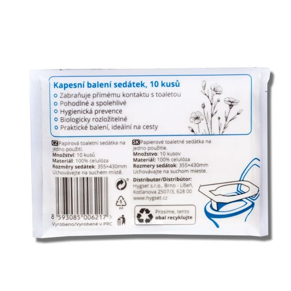 Cestovní balení 10 ks jednorázových papírových sedátek na toaletu.