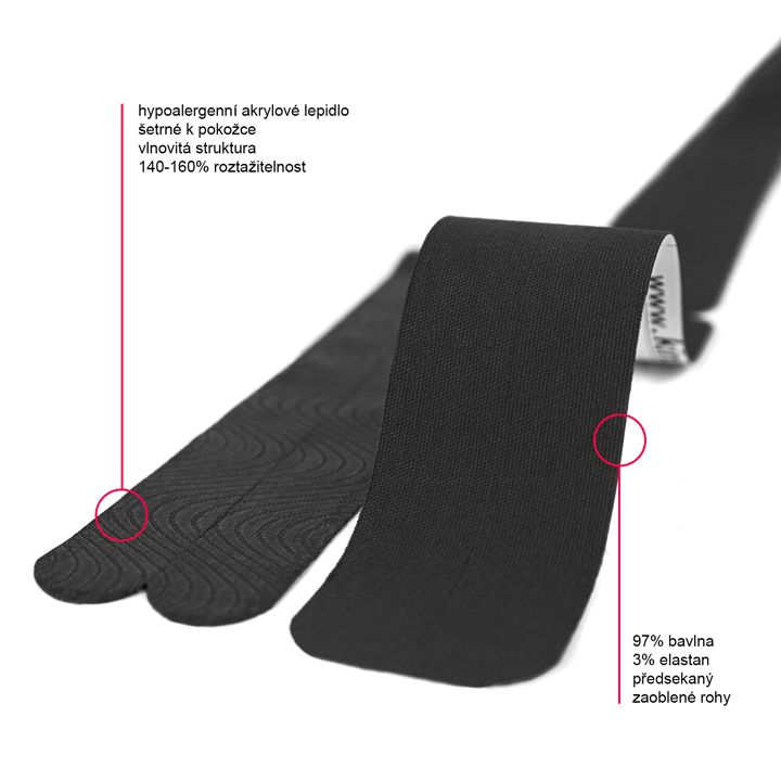PreCut Tape lze přímo aplikovat bez dalšího stříhání pro tvar "I" nebo "Y". Díky hypoalergennímu akrylovému lepidlu ve tvaru vlny je tato páska šetrná k pokožce velmi pružná a pružná. Naše páska zajišťuje a podporuje optimální přizpůsobení se strukturám lidského těla, jako je kůže, svaly, meridiány atd. Naše páska je velmi odolná, vodotěsná a odolná proti roztržení.