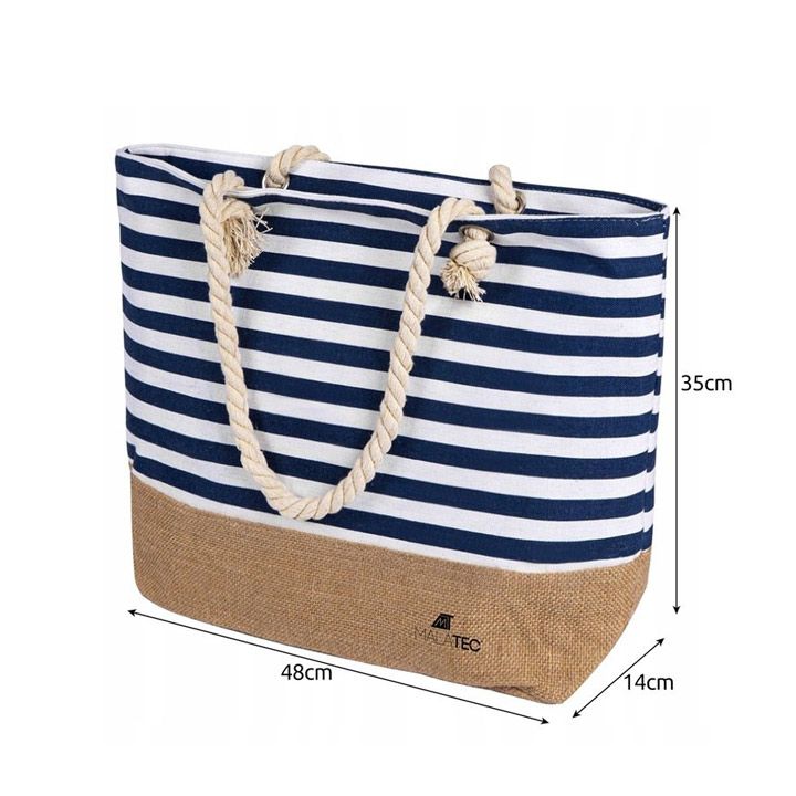 Taška je prostorná, vejde se do něj ručník, plavky, kosmetika, knihy, pití, svačina a další potřebné věci při odpočinku na pláži nebo pikniku.