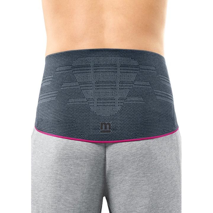 Bedrová elastická ortéza s výstuhami as bedrovou masážnou pelotou. Odľahčuje lumbosakrálny prechod a stabilizuje „SI“ kĺby, pelota zaisťuje v dôsledku rôznej tvrdosti nopkov ešte lepšie prekrvenie muskulárnych častí v oblasti bedier, takže kompresia bandáže pôsobiaca na svalové receptory ich podnecuje k látkovej výmene, ďalej znižuje svalové napätie a navyše pôsobí ako prostriedok zmierňujúci bolesť. . Clima-Comfort® úplet odstraňuje rýchlo a dokonale vlhkosť, čo je príčinou príjemného pocitu pri nosení. Proprioceptívne pôsobiaca kompresia bandáže povzbudzuje látkovú výmenu, odstraňuje svalové spazmy a utišuje bolestivosť.