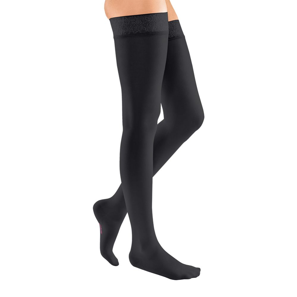 Elegantní stehenní kompresivní punčocha vyrobená z velmi jemného mikrovlákna s dekorativní krajkou v provedení "sensitive". Navržena je pro pacienty potřebující II. kompresní třídu (střední komprese) s důrazem na komfort a vhodnost pro citlivou či atopickou pokožku.