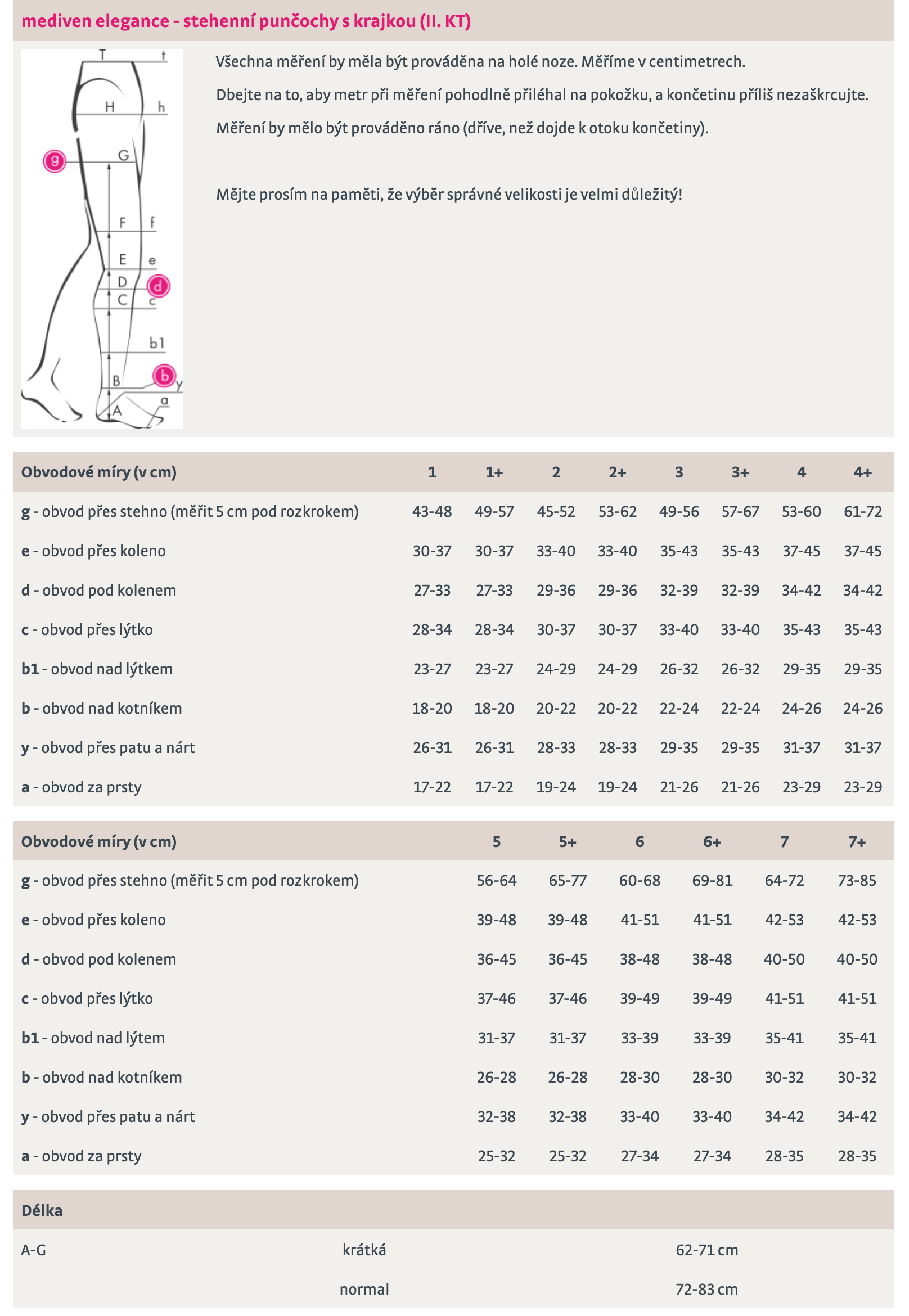 Pro přesné určení velikosti doporučujeme použít kompletní tabulku velikostí (měření A–G) a v případě potřeby kontaktovat odborné měření v prodejně.