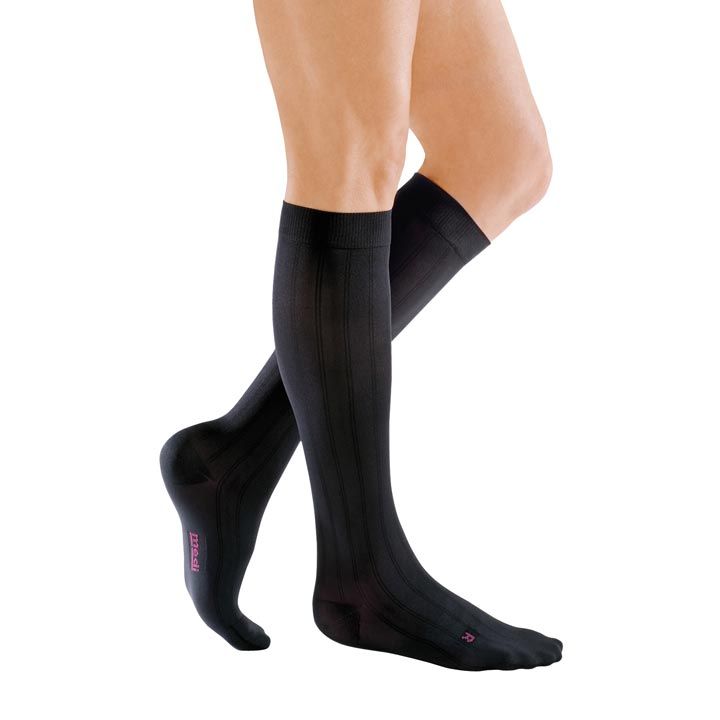 mediven for men jsou zdravotní kompresivní lýtkové punčochy s komfortní, anatomicky tvarovanou chodidlovou částí a s rozlišením levé a pravé nohy, což je jasně naznačeno na vnějším okraji hřbetu chodidla. Punčochy mediven for men jsou jemné, hladké a poddajné. Tohoto je dosaženo použitím materiálů, které byly vyvinuty speciálně pro medi. To je také zárukou toho, že se punčochy snadno oblékají. Široký zdravotní lem zaručuje perfektní a pohodlné padnutí punčoch bez sklouzávání.