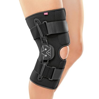 Krátká, funkční kolenní ortéza s možností limitace pohybu. Pohyblivé boční dlahy s dostatečnou boční stabilitou, polycentrický pohyb kolene zajištěný speciálními klouby „physioglide", lehký prodyšný materiál s propriocepčním efektem „D-Tex", zesílení pevnosti velcro páskami, snadná aplikace (rozepínací typ), možnost nastavení omezení pohybu: