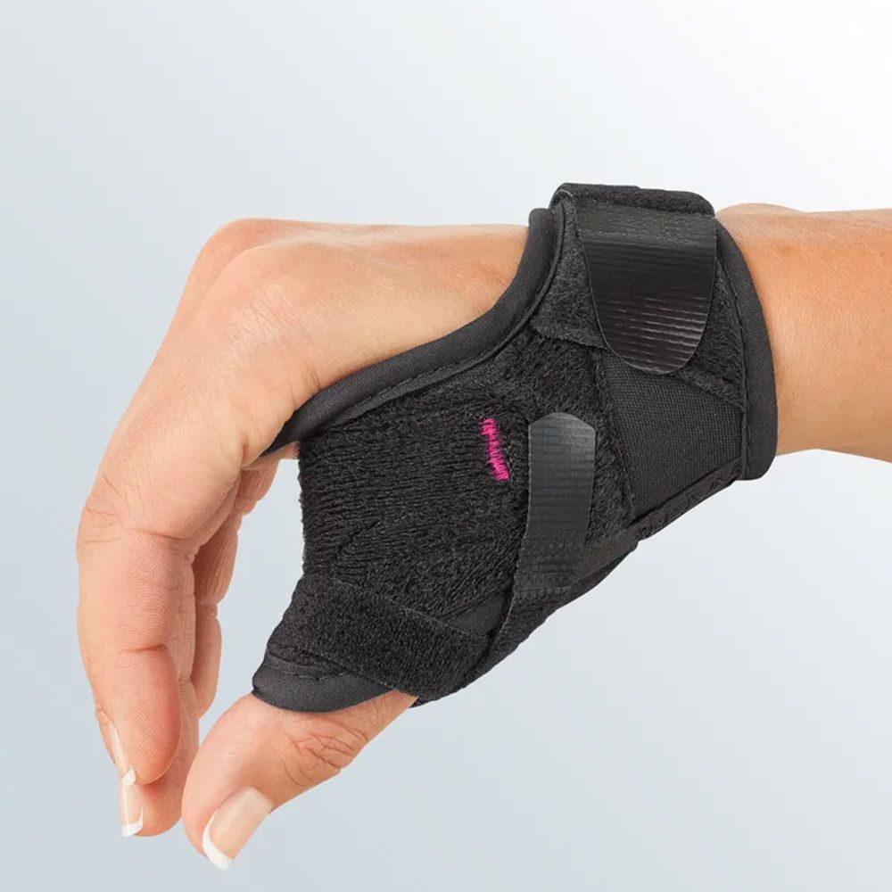 Semirigidní prodyšná palcová ortéza fixující CMC kloub palce. Zapínání na suchý zip, stranově univerzální.