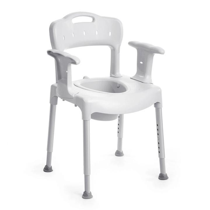 Toaletní a sprchová židle 3 v 1 s mnoha inteligentními funkcemi. Sedák se skládá z odnímatelné nádoby s bezpečným víkem, které se při zvedání automaticky zafixuje. Swift kommod lze nastavit s lehkým náklonem dopředu pro snadnější zvedání se klienta ze židle. Polstrování sedu a zádové opěry je měkké a je dodáváno standardně spolu se židlí.