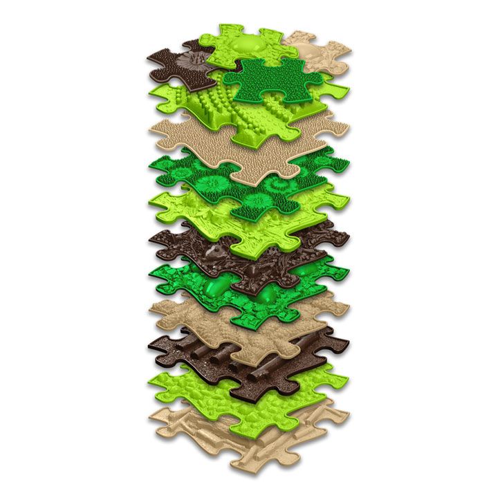To ale není vše, ortopedické podložky rozvíjejí fantazii, jemnou motoriku, koordinaci, orientaci v prostoru, pravolevou orientaci a reakční rychlost. Naučí děti barvičky, čísla i slovíčka v cizím jazyce. Set Dotek přírody obsahuje mini podložky, které jsou dětmi velmi oblíbené. Ze 4 mini dílků si sestaví čtyřbarevnou podložku standardních rozměrů.