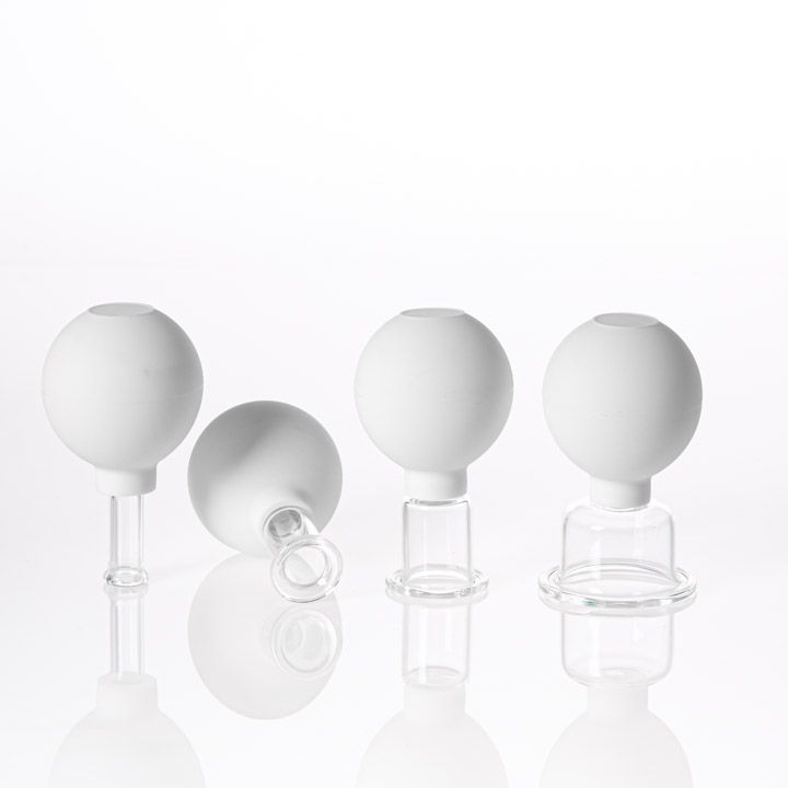 Masážní baňky z tlustostěnného borosilikátového skla jsou vhodné na masáže i přikládání. Můžete použít jednoduše v klidu domova nebo u profesionála v salonu. Podtlak vytvoříte pomocí balónku. Díky lepšímu prokrvení se mohou kyslík a živiny lépe dostat k buňkám pokožky. Dochází tak k redukci vrásek, vyhlazení pleti, stimulaci produkce kolagenu a lepší elasticitě pleti.