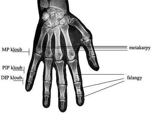 měří se obvod prstu v DIP kloubu
