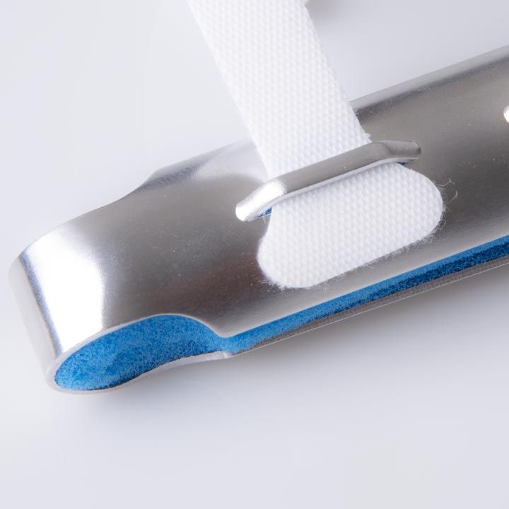 Duralová dlaha na fixáciu prstov ruky s integrovanými pásikmi na suchý zips.