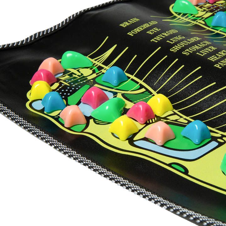 Na podložce je znázorněno konkrétními popisky kamínků, ke které části těla či orgánu se vztahují. Po dlouhé podložce se můžete i projít a podpořit účinek masáže. Relaxujte v pohodlí domova či kanceláře!