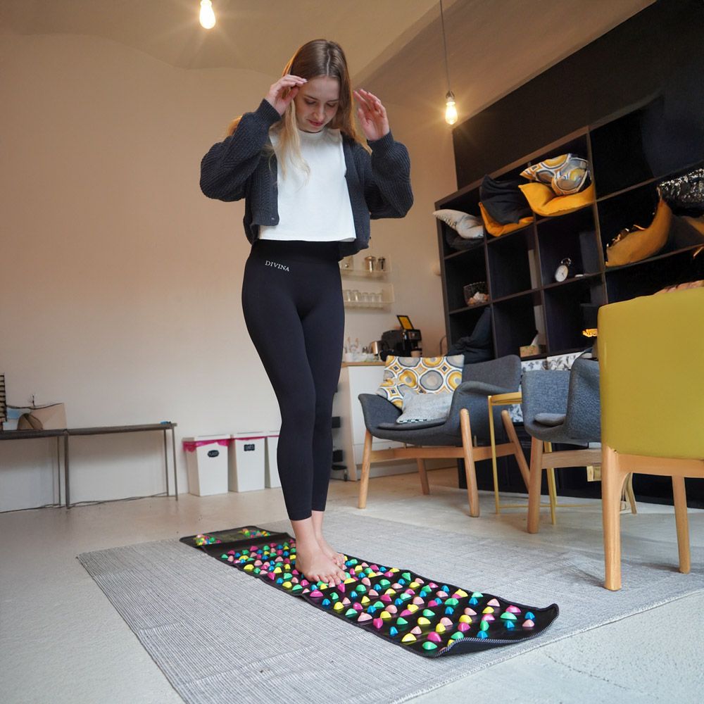Masážní podložka vhodná pro stimulaci reflexních bodů a plošek chodidel.
