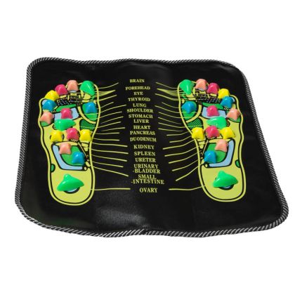 Akupresurní podložka splní účel domácí masáže chodidel. Podložka je poseta barevnými kamínky, které vyplňují obrysy chodidel. Pozice kamínků odpovídá bodům, které stimulují nebo naopak uklidňují určité orgány a části těla. Díky reflexní masáži podporujete cirkulaci krve ve Vašem těle. Akupresurní kamínková podložka pomáhá posilovat také Vaší imunitu, ulevuje při bolestech zad a hlavy.