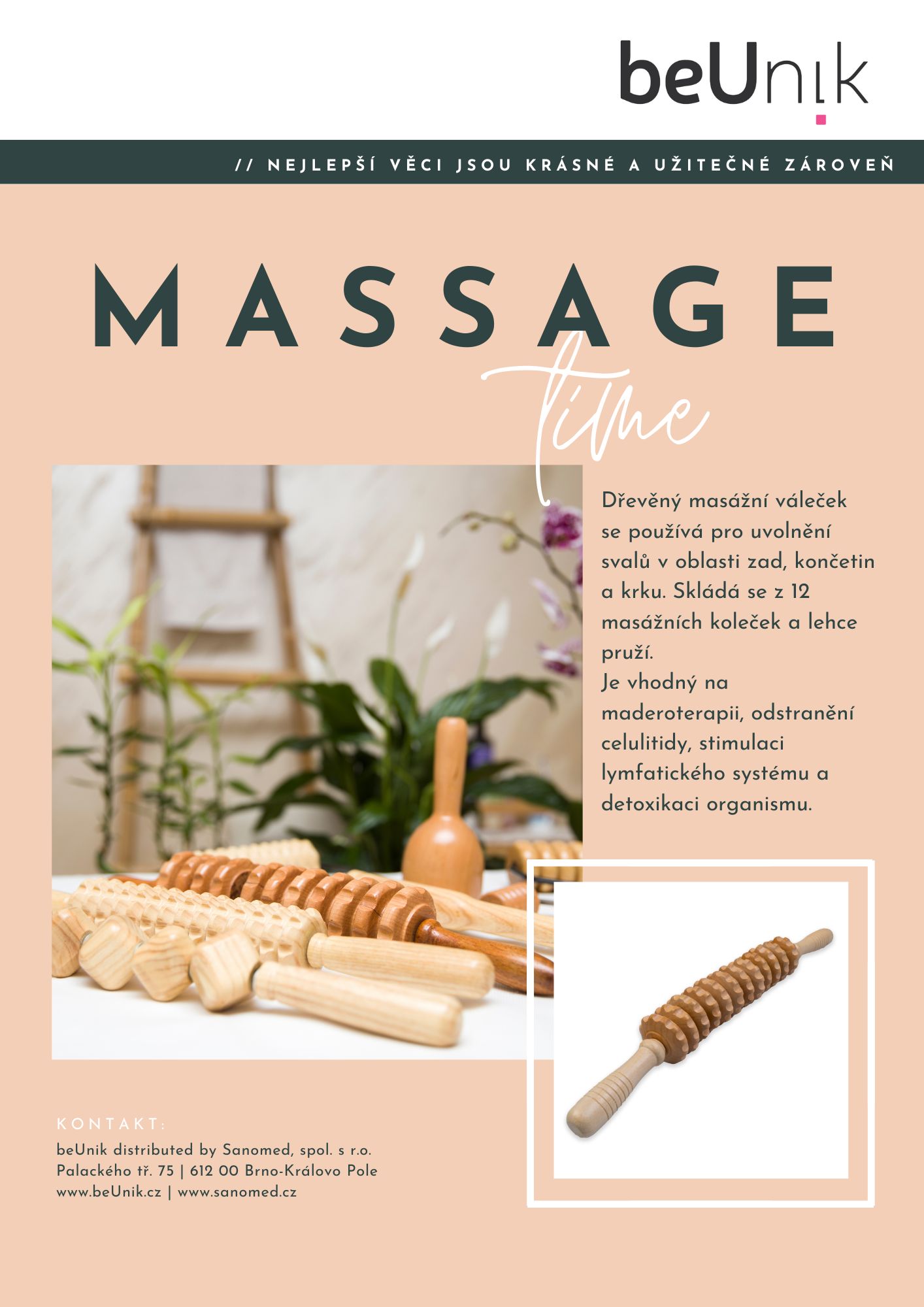 Pomůcka je vhodná na maderoterapii, odstranění celulitidy, stimulaci lymfatického systému a detoxikaci organismu. Vhodná je na problematické partie těla jako jsou stehna, bříško, zadek, paže a boky.