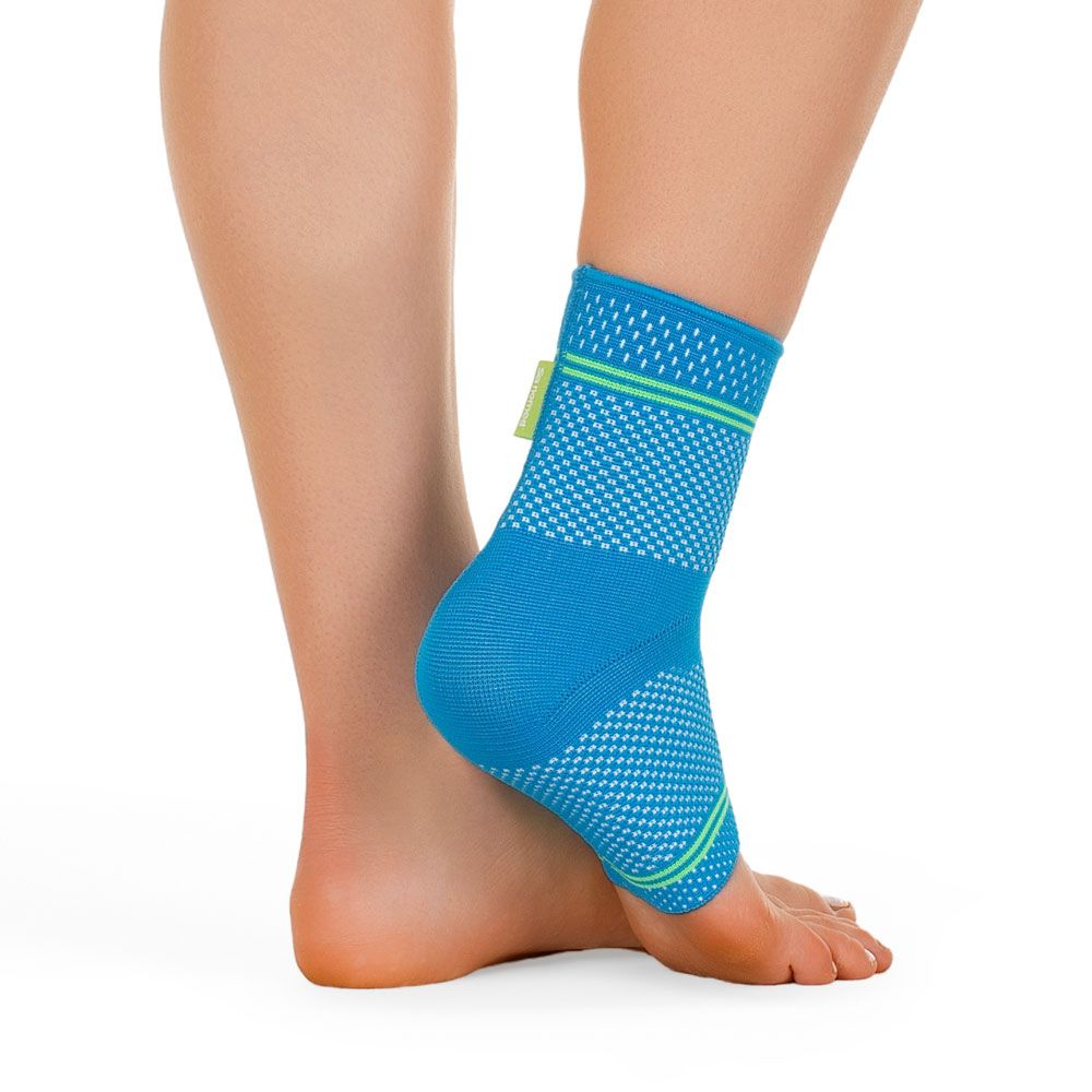 Anatomicky tvarovaná elastická bandáž hlezna navržena pro sportovní aktivity.