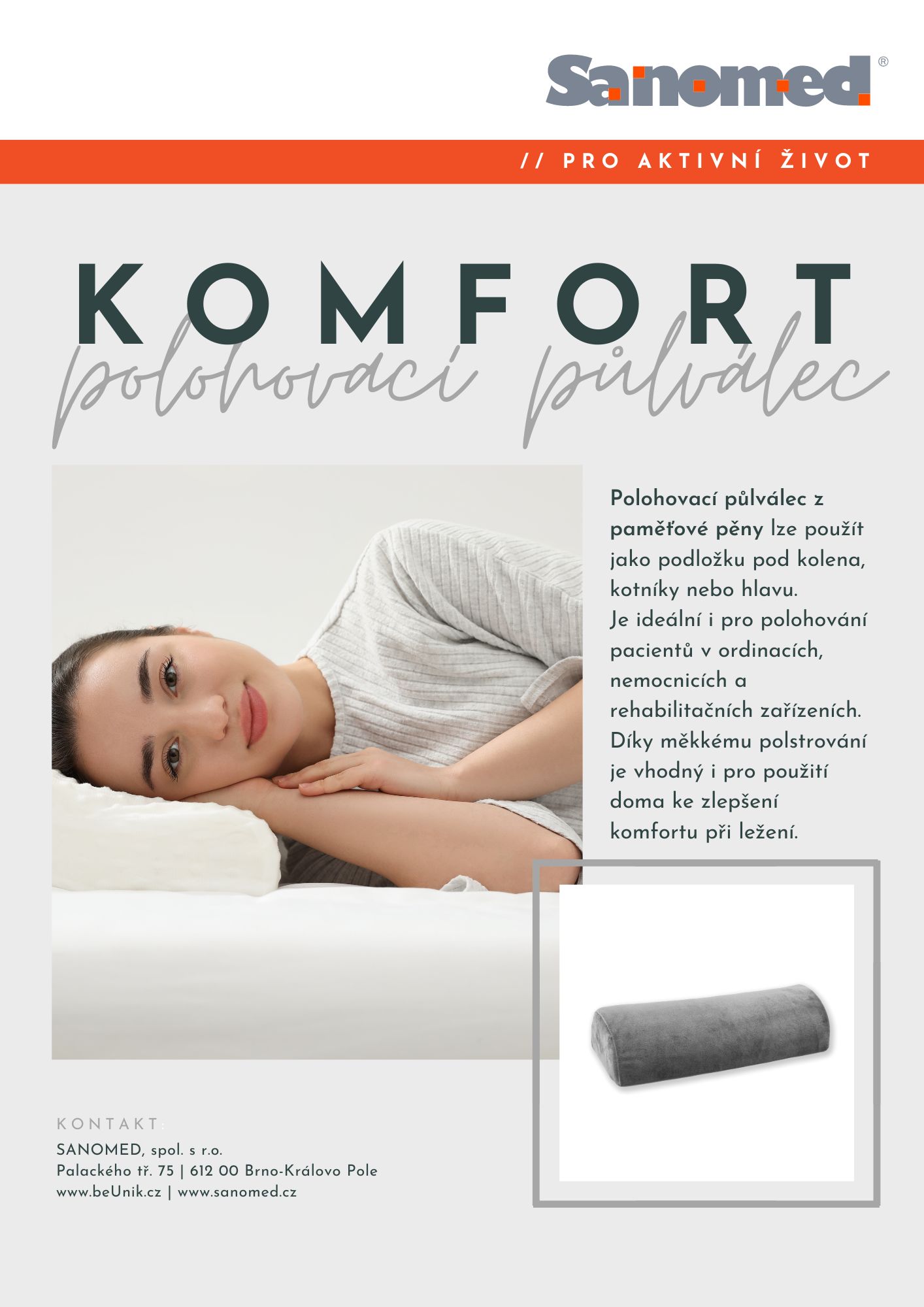 Je ideální i pro polohování pacientů v ordinacích, nemocnicích a rehabilitačních zařízeních. Díky měkkému polstrování je vhodný i pro použití doma ke zlepšení komfortu při ležení.