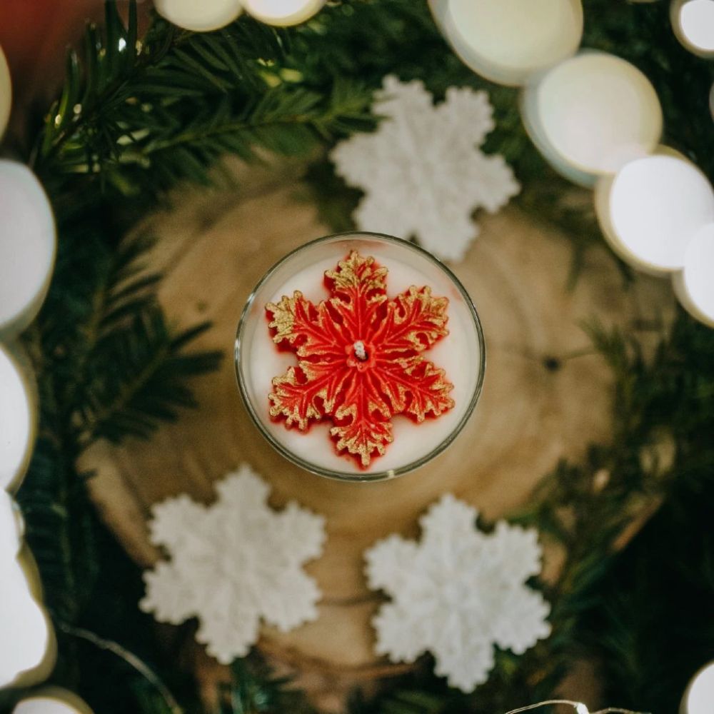 Vánoční hvězda designová vonná svíčka ve tvaru hvězdy. Elegantní dekorace s jemnou sváteční vůní, ideální jako vánoční dárek nebo doplněk interiéru.