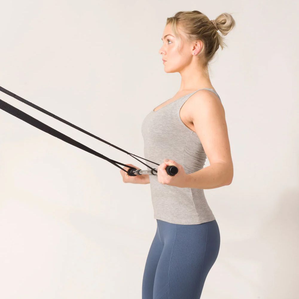 Patentovaný a přenosný set pro domácí cvičení, mobilitu a trénink správného držení těla. Ideální pro všechny úrovně pokročilosti – i pro začátečníky bez předchozích zkušeností.