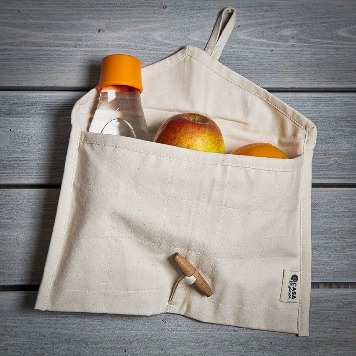 Pratelná kapsa na svačinu z nebělené biobavlny bez plastové nepropustné úpravy. Dvě prošité vrstvy hutné bavlněné látky zajistí přepravu vašich dobrot bez nehod.