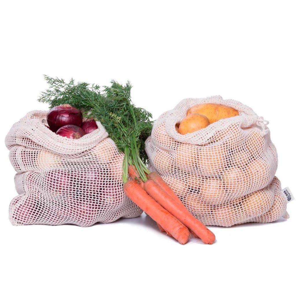 Sieťovinové vrecká s hustejšou štvorcovou sieťou sa hodia najmä na ovocie a zeleninu. Majú sťahovaciu šnúrku, takže obsah z vrecka len tak nevypadne a vrecko tým ide aj ľahko zavesiť. Do týchto biobavlnených sáčkov je možné potraviny priamo nakupovať aj ich v nich skladovať. Štítky z váhy na nich bez problémov držia a pokladníčka sa väčšinou ani veľmi nediví :-)