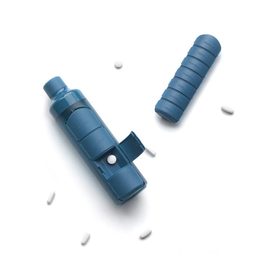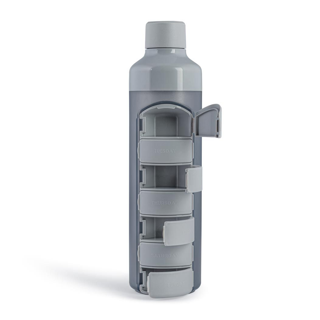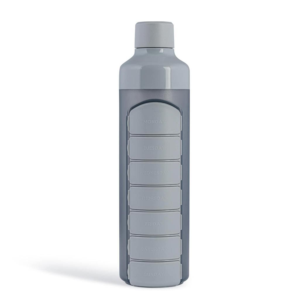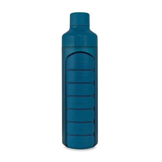 Je čas vzít si léky nebo doplňky stravy? Otevřete správné políčko v dávkovači a vezměte léky, které zrovna potřebujete. Následně jednoduše zapijete vodou. Na zadní straně láhve je indikátor objemu, který určuje množství zbývající vody. Obsah láhve je 375 ml. K dispozici jsou dvě varianty dávkovačů léků. Buďto 4 políčka na 1 den nebo 7 políček na celý týden. Dávkovače můžete na láhvi jednoduše střídat. Doporučujeme dávkovač prát a omývat v ruce.